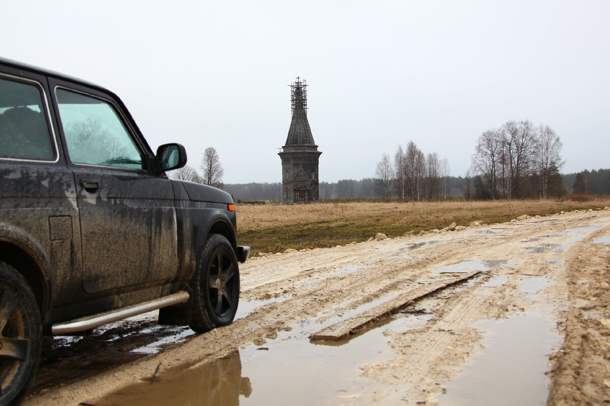 На нижней Онеге и в прилегающей части Беломорья они не встречаются вообще. Если на Двине мы находим примеры восьмигранных шатровых храмов с архаичными тяжеловесными пропорциями, с рублеными главами, то на Онеге верхи заметно выше и стройнее. Высокие шатры связываются с распространением на севере традиций Московской Руси. Онежские восьмигранные храмы XVII в. отличаются схожими пропорциями. Церковь в Астафьево – давно утрачена, в Задней Дуброве остался только восьмерик храма, в Красной Ляге – единственная полностью сохранившаяся церковь.