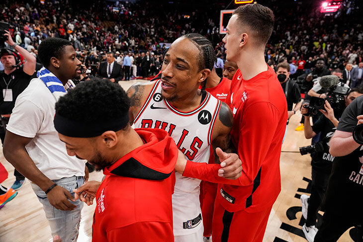 Сегодня «Рэпторс» принимали «Чикаго» и старого знакомого Демара Дерозана. Когда-то Демар был выбран на драфте «Торонто», дорос до статуса капитана команды, он еще долго будет лидером в истории «Рэпторс» по очкам и играм. Но именно его обменяли на Кавая Ленарда перед чемпионским сезоном-2018/19. С тех пор Дерозан не выиграл ни одной серии плей-офф за «Сперс» и «Буллз».