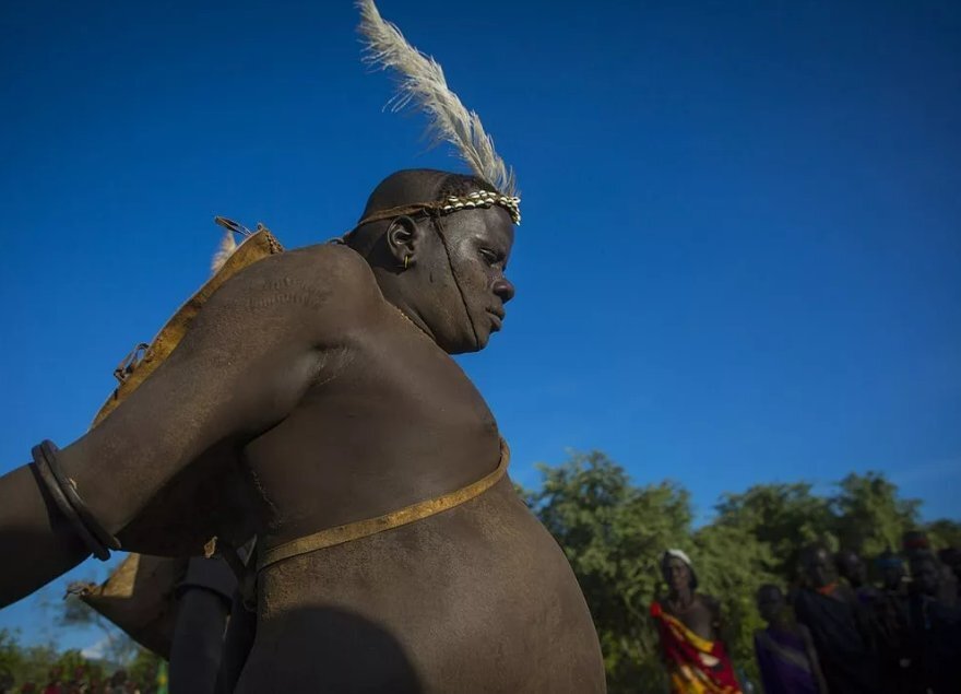 В этом африканском племени большие и толстые мужчины считаются красавцами. Мужчины соревнуются за звание самых толстых в деревне, выпивая отвратительную смесь крови и молока. В это время они живут в изоляции в течение шести месяцев Худой мужчина может быть популярен в других уголках страны и мира, но только не в племени Боди или Мин. Здесь считается наоборот. Чем больше и тучнее человек, тем это красивее. Это племя живет в отдаленном уголке эфиопской долины под названием Омо. Она является родиной необычного ритуала, согласно которому молодые люди наедаются коровьей кровью и молоком. И все это лишь для того, чтобы стать самым толстым мужчиной племени. Через шесть месяцев после начала этого ритуала мужчины соревнуются в демонстрации своих тел, которые за это время напитались силой и объемом. Среди них выбирают победителя. Затем толстяка-чемпиона чествуют как героя до конца его жизни. Французский ученый Эрик Лафорг пролил свет миру на этот обряд и на это племя. Именно после его фотографий