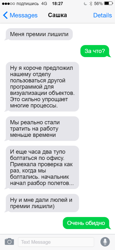 Все знают крылатое выражение "инициатива наказуема" и менее литературную версию (гугл в помощь, если не знаете). Однако от формулировки мало что меняется, суть остается прежней. В целом инициатива сама по себе - это хорошее явление. Так человек может попробовать что-то новое, получить опыт и знания, найти новых знакомых, получить желаемую должность или карьерное продвижение. Я же хочу привести ситуации, где вроде бы и стоило проявить инициативу, но такой порыв не оценили по достоинству. Фигово, когда компания не хочет развиваться, модернизировать технологии и облегчать некоторые процессы для сотрудников. Лишать премии человека, который оптимизировал работу - это как-то совсем глупо... Вот так и делай доброе дело! У меня была похожая ситуация, когда я хотела помочь бабушке - она сидела на лавочке с кучей вещей. Я подумала, что ее кто-то из дома выгнал или случилось чего (пожар и т.д.). Подошла, спросить нужна ли ей помощь, а в итоге меня таким матом покрыли. Только потом узнала, что это