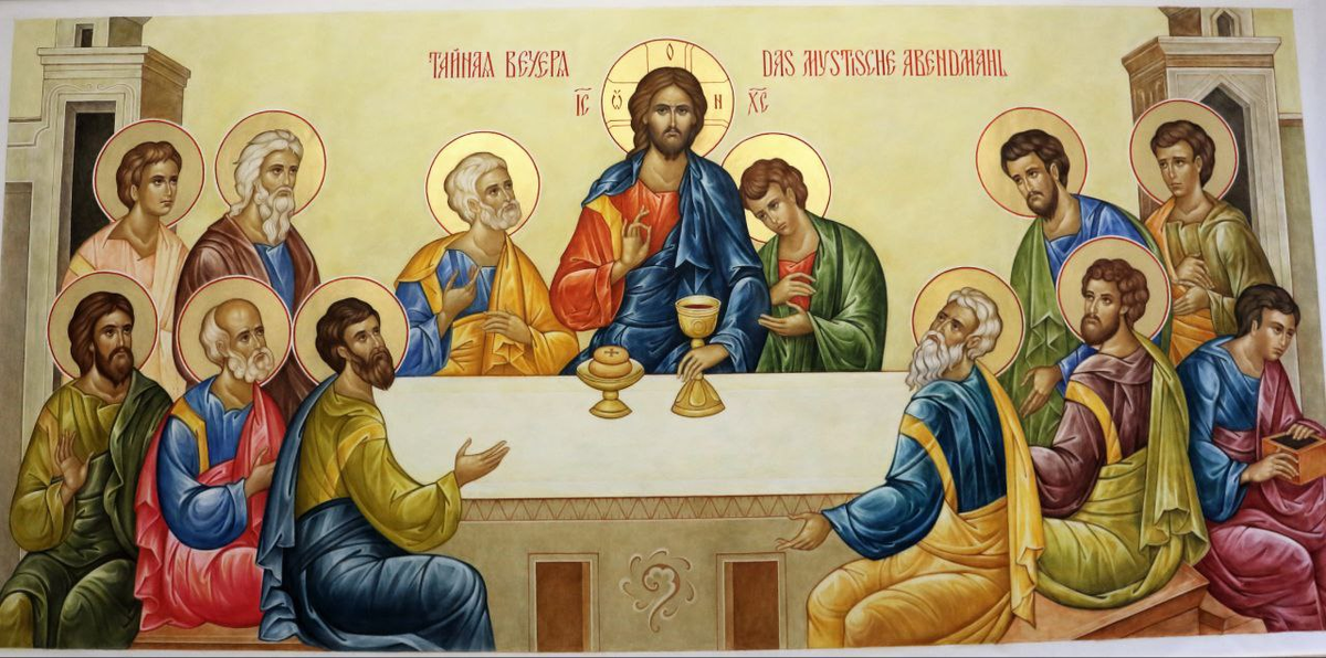 И Он как раз на Тайной Вечере устанавливает таинство приобщения людей Своей Божественной Плоти и Крови:
