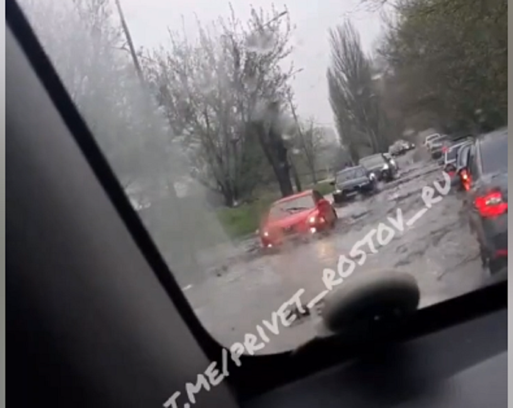 Пятидесятилетняя «Царь лужа» сковала улицу Оганова в Ростове-на-Дону днем 13 апреля