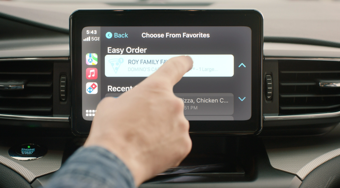 Сеть пиццерий Domino’s обновила свое мобильное приложение под iOS, теперь оно доступно в CarPlay и водители могут заказать пиццу по пути домой.