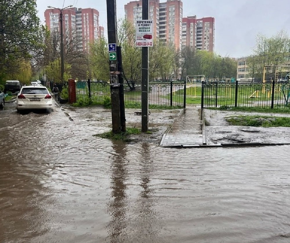 В Ростове полностью затопило дорогу к школе №112 в Советском районе днем 13 апреля