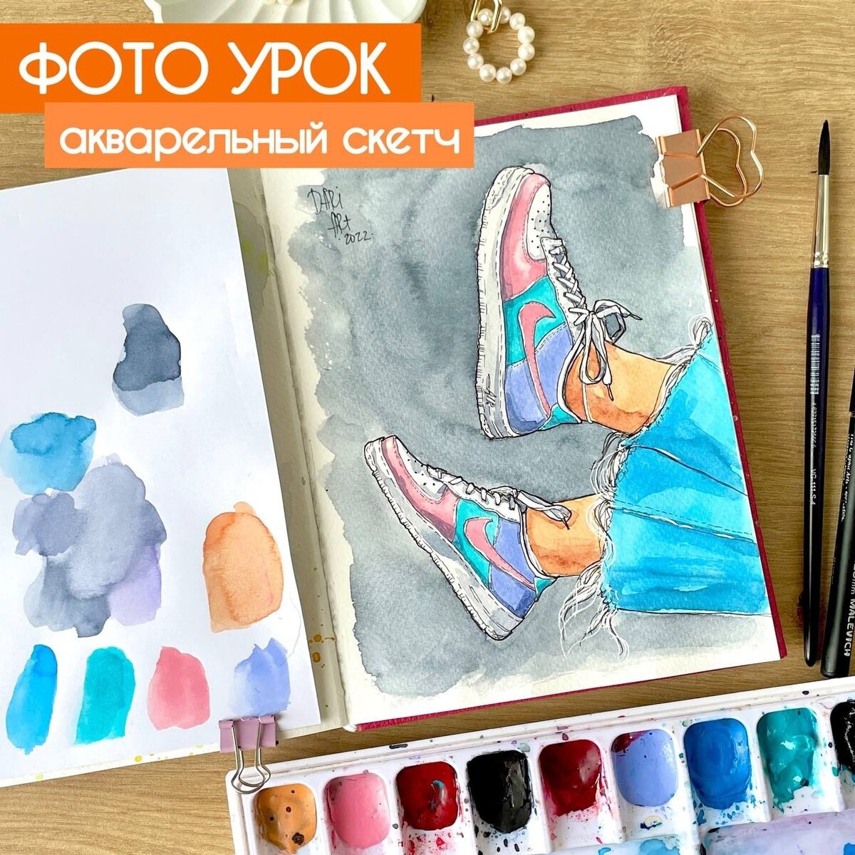 В коллекции фото - уроков Dari Art есть стильный сюжет в технике акварельного скетча, рисуйте вместе с нами!