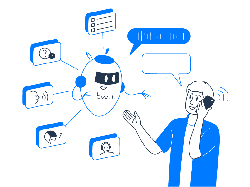В отличие от шаблонных меню автоответчика, голосовые роботы TWIN предлагают полноценные диалоги, которые выстраиваются, исходя из намерений абонента.