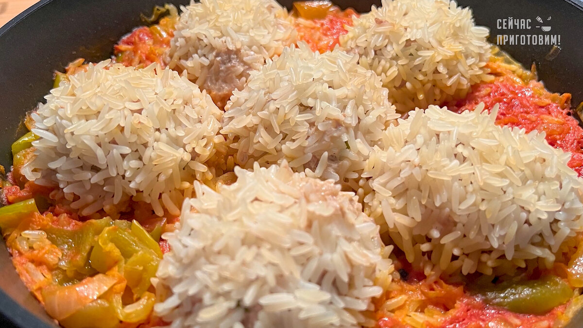 Выливаем стакан томатного сока. Доводим до кипения и готовим под закрытой крышкой на небольшом огне 50 минут. Крышку во время готовки ни в коем случае не открываем! Нам нужен пар постоянной температуры, чтобы рисинки "встали".