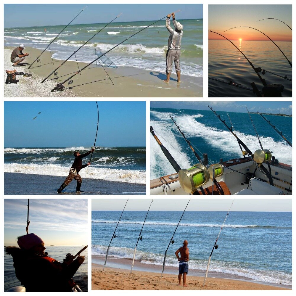 Классическая рыбалка в открытом море – это практически всегда целенаправленная ловля трофейной рыбы на больших глубинах. Данная особенность предполагает использование особого типа снастей – в первую очередь, понадобится спиннинг для морской рыбалки, а также силовая мультипликаторная либо безынерционная катушка, способная справиться с существенными нагрузками во время вываживания. Применяются морские спиннинги и при ловле на закрытых пресноводных водоемах. Главным образом, используются они тогда, когда речь идет о целенаправленной ловле крупного сома, трофейной щуки и судака, чье поведение во время вываживания способно вывести из строя даже достаточно мощные рыболовные снасти. Одним словом, спиннинг для моря – это универсальная снасть для трофейной рыбалки, которая должна быть в арсенале у каждого рыболова! На что обращать внимание рыболову, решившему купить спиннинг для морской рыбалки? Длина удилища Поскольку морская рыбалка в 90% случаев происходит с лодки либо катера, использовани