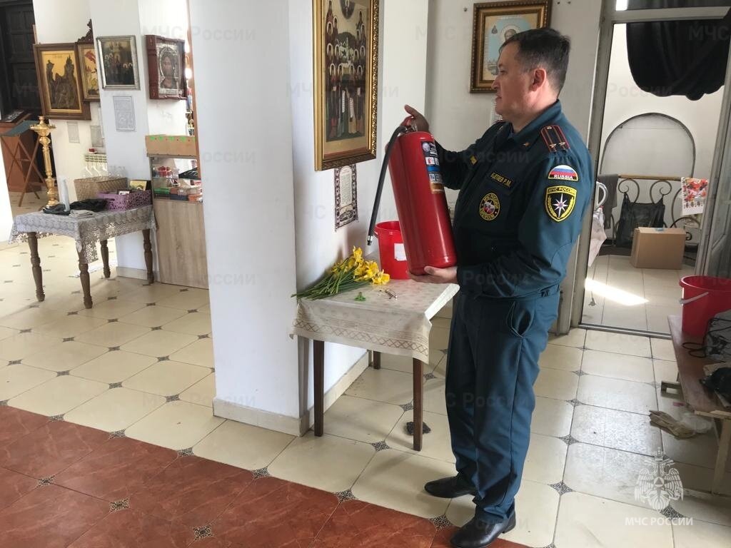 В преддверии светлого праздника Воскресения Христова сотрудниками Управления надзорной деятельности и профилактической работы Главного управления МЧС России по Республике Северная Осетия-Алания проводится комплекс профилактических мероприятий, направленный на усиление пожарной безопасности и повышение уровня противопожарной защиты культовых объектов, задействованных в проведении праздничных мероприятий. В частности проводятся осмотры, практические тренировки по эвакуации в случае возникновения пожара, инструктажи и беседы со служителями и прихожанами. «С настоятелями и служащими церквей и храмов проведены противопожарные инструктажи, в том числе по действиям при возникновении чрезвычайных ситуаций. Осмотрен доступ к путям эвакуации, проверено наличие первичных средств пожаротушения, надежность закрепления светильников, подсвечников и ковровых дорожек в церкви», – подчеркнул начальник Управления надзорной деятельности и профилактической работы Павел Джанаев. Инспектора УНД и ПР призываю