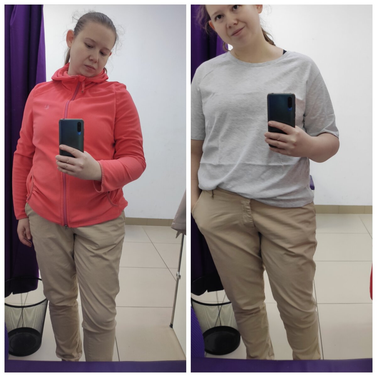 Я тут обнаружила, что классные штаны, которые я покупала в самом начале похудения стали на меня большие! Вот эта статья. Только посмотрите на заголовок 😱 Вот тут я тоже в них, и еще с подсчетом калорий 😁 Но они настолько приятные к телу, что я буду продолжать их носить, просто ремень буду одевать. Но уже не в офис, а на тренировку или на детскую площадку. Нынешняя мода готова всё прощать 🙃 Обнаружила, что все мои майки на весну-лето не подходят: либо слишком большие, либо слишком обтягивают. А лжебеременность так или иначе всё равно еще есть. На фото слева - это мой нынешний повседневный нерабочий вид. А на фото справа - обновка. Заказала обычную, приятную к телу футболку. Планирую ей драпировать живот. Еще забрала свой купальник. Это полнейший восторг! 🥰 Почему я раньше не рассматривала такие модели? Почему я, как минимум 20 лет(!,) мучалась с вечно выпадающим третьим размером?! Посмотрите какая модель: Не я модель, а модель купальника 😁 Планировала изначально его использовать