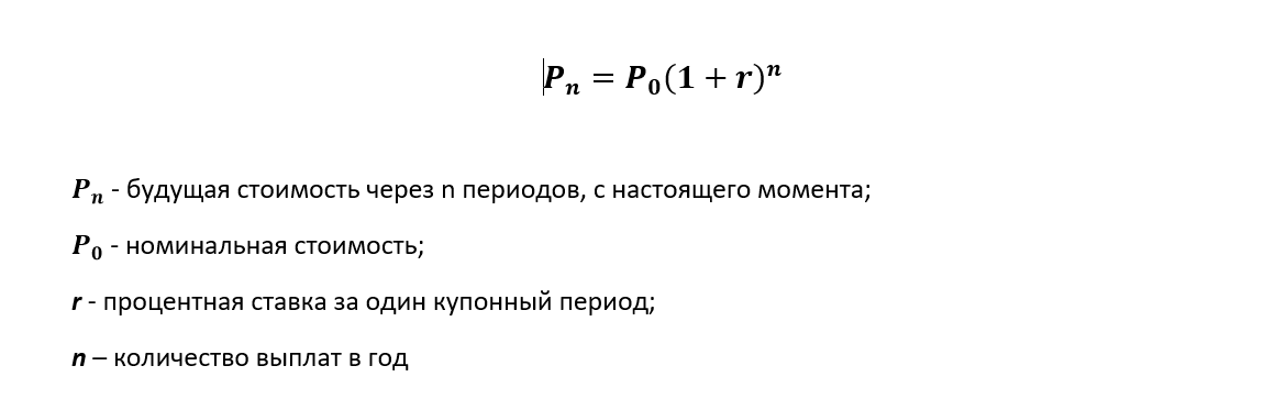 Будущая стоимость стоимость облигации при выплате купонов 12 раз в год. Формула: Дано: Сумма – 1 млн рублей; Ставка - 10% годовых; Количество купонов в год - 12; Срок инвестирования - 3 года. Будущая стоимость стоимость облигации при выплате купонов 4 раза в год. Дано: Сумма – 1 млн рублей; Ставка - 10% годовых; Количество купонов в год - 4; Срок инвестирования - 3 года. Будущая стоимость стоимость облигации при выплате купонов 2 раза в год. Дано: Сумма – 1 млн рублей; Ставка - 10% годовых; Количество купонов в год - 2; Срок инвестирования - 3 года. Все облигации, которые имеют 12-ти купонный период- это облигации с повышенным риском и некоторые из них, можно купить у кого есть статус квалификационного инвестора. Прошу Вас, будьте очень осторожны при выборе таких облигаций. ⛱ Всем счастья и финансовой независимости!!!
