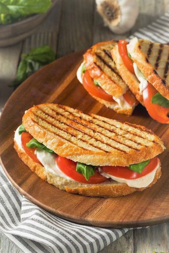 Предлагаю рецепт аппетитных горячих бутербродов с томатами, моцареллой и базиликом. Ингредиенты: