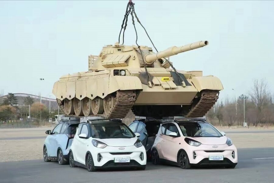 Надежность электромобилей Chery проверили на китайской копии советского танка Т-54
