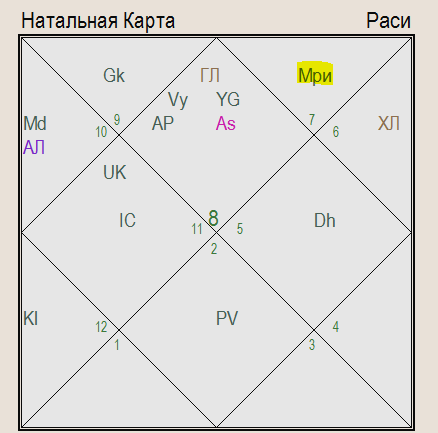 Смерть, наказание, расплата, неожиданное, непредсказуемое. Отражение Мангала (Марса) в 3 измерении. Расположение в бхавах 1 Бхава - травма головы, проблемы с головой, повышенная угроза смерти, повреждений, уязвимость здоровья, склонность к авариям, катастрофам, проблемы с огнём (оружием). Нельзя увлекаться экстремальным спортом. 2 Бхава - проблемы со всем что идёт внутрь, со всем что ест человек, алкоголизм, мясоедение — человек делает что-то неестественное (или непереносимость этих вещей); бедность; угроза для жизни и здоровья (2 дом — марака); проблемы в отношениях; вредные привычки, отравления,опасность от лекарств. ( нигде не указано, но думаю влияет и на родительскую семью, потеря семьи) 3 Бхава - проблемы со здоровьем (наподобие Мритью в 1м, но мягче); проблемы с родственниками по крови (младше по возрасту), нужен естественный/правильный образ жизни, правильное питание 4 Бхава- угроза жизни и здоровью матери; крах семейной жизни (была семья, но разрушается); проблемы с д