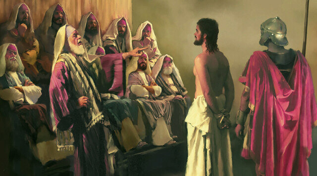 “Первосвященник же спросил Иисуса об учениках Его и об учении Его. Иисус отвечал ему: «Я говорил явно миру; Я всегда учил в синагоге и в храме, где всегда иудеи сходятся, и тайно не говорил ничего. Что спрашиваешь Меня? Спроси слышавших, что Я говорил им; вот, они знают, что Я говорил». Когда Он сказал это, один из служителей, стоявших близко, ударил Иисуса по щеке, сказав: «Так отвечаешь Ты первосвященнику?» Иисус отвечал ему: «Если Я сказал худо, покажи, что худо; а если хорошо, что ты бьёшь Меня?» Анна послал Его, связанного, к первосвященнику Каиафе” (Ин. 18:19–24).