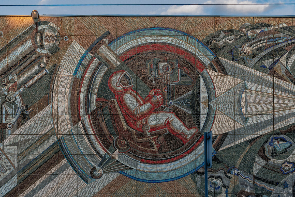 Панно создано художником Владимиром Мишиным в 1976 году к 15-летию полёта Юрия Гагарина в космос.