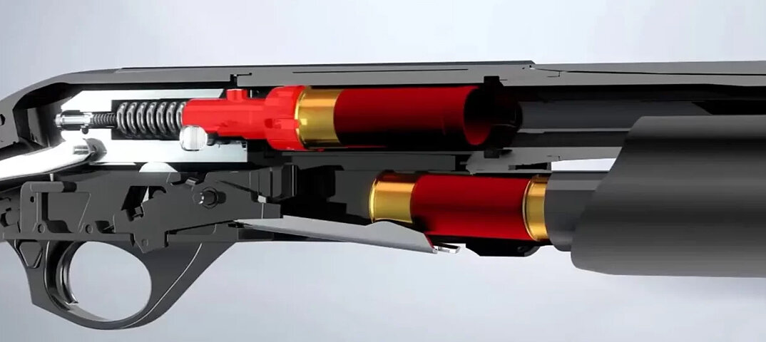 Инерционная система также использует энергию выстрела для своей работы, но несколько иным способом. В стволе инерционного ружья нет газоотводных отверстий. Извлечение стреляной гильзы и досылание следующего патрона в патронник также происходит за счет энергии выстрела, который толкает затвор назад, но несколько иным способом.