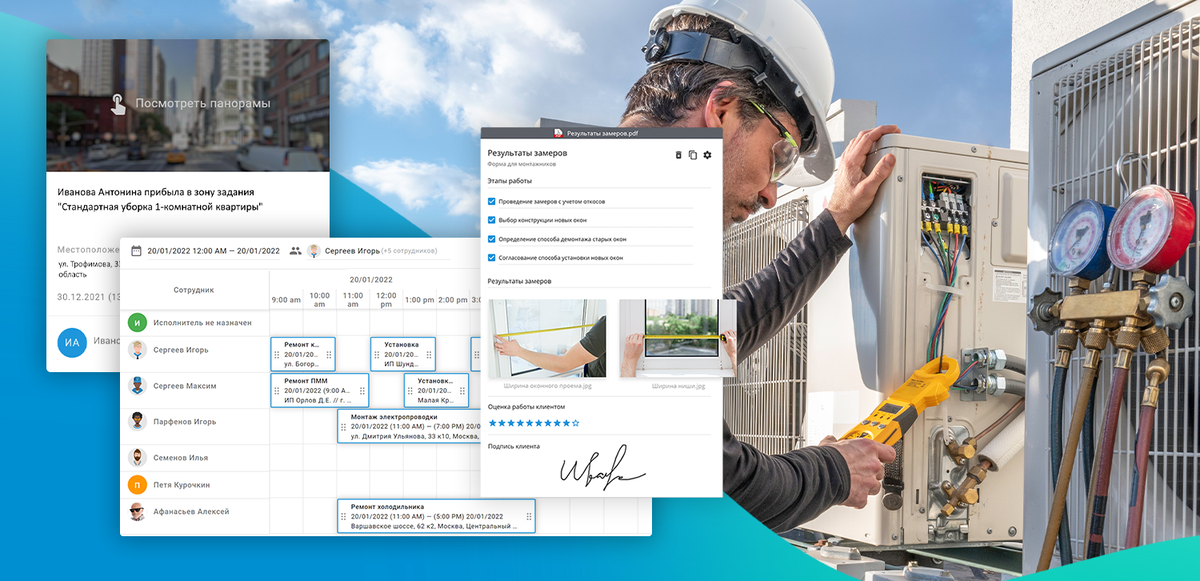 Если вы уже работаете с решениями для бизнеса и используете несколько программ, то знаете, как сложно синхронизировать данные в разных системах. В сервисных компаниях часто существует такая практика: прием заявок от клиентов с помощью одной программы, а назначение задач сотрудникам в другой. Диспетчеры тратят много времени на обработку запросов и последующее распределение их среди сотрудников выездной команды.