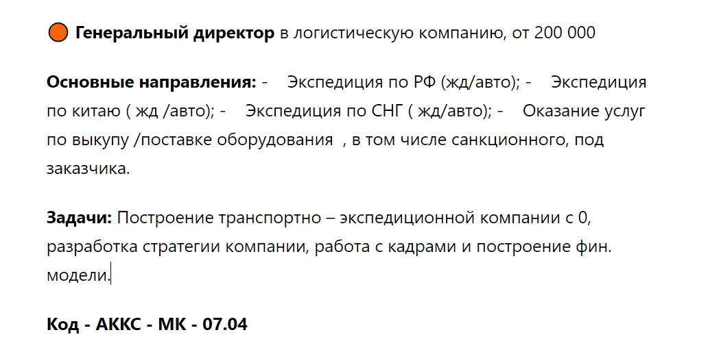 Если вы впервые видите сегодняшнюю подборку, расскажу , как тут все устроено: ✅вакансии вручную собраны от коллег-рекрутеров ✅каждая вакансия имеет код ✅выбираете вакансию, которая вам нравится и где вы соответствуете требованиям ✅в комментариях обозначаете ее код ✅я с вами связываюсь и инструктирую по дальнейшим действиям Вы можете быть уверены в том, что: 👍большая часть вакансий не размещена на работных сайтах 👍ваше резюме попадет к нужному рекрутеру 👍 используя этот канал - вы минуете конкурентов 👍 каждую пятницу вы увидите здесь новую подборку нестандартных вакансий от своих 🟠 HR менеджер в производственную компанию г.Дзержинск Функционал: -Разработка политик и процедур управления персоналом; -Вовлечение сотрудников в выполнение этих положений; -Подбор, адаптация, удержание, ротация; -Развитие, организация обучения; -Разработка, реализация и постоянная корректировка системы оплаты труда; -Ведение кадрового документооборота. Нижегородская обл. 5/2, 9-18.00, 45 тыс Код - АКК