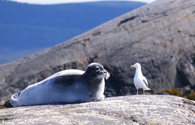 Если вы вдруг попадёте когда-нибудь на остров, то вполне можете увидеть странную пару ― нерпа и чайка. Нерпа людей совсем не боится ― да и чего ей бояться в национальном парке, а чайка от нерпы не отходит ни на один свой чаячий шаг. Иногда они рядышком качаются на волнах, иногда благодушно греются на камнях. «Смотрите, нерпа!» ― обычно кричат дети, а взрослые тут же достают фотоаппараты. Нерпа с чайкой охотно позируют, и теперь их портреты украсили глянцевые страницы многих журналов. На первый взгляд может показаться, что зверь и птица ничего не делают, да и на второй взгляд, скорее всего, тоже, но на самом деле они несут службу ― охраняют остров от Гэсен-бурхана.