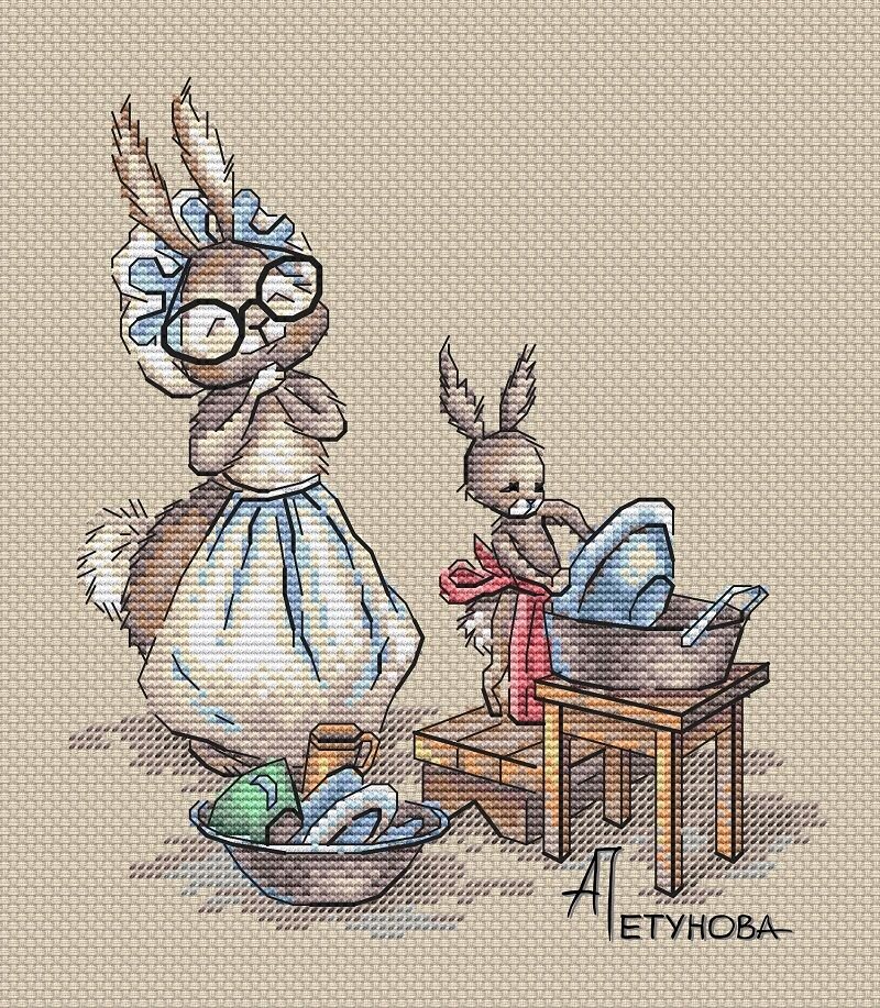 Доброго времени суток. Рада приветствовать Вас на своей рукодельной страничке. Решилась я попробовать вышивку на равномерке. Выбрала достаточно не большую схему от Анны Петуновой, называется Помощник. Эта серия с зайцами просто влюбила меня в себя. По материалам: Белорусская равномерка 30 каунта, ниточки схс 20 оттенков. Размер готовой работы в крестиках 88 на 100, на 30 каунте будет приблизительно 15 на 17 см. Начала из центра с маленького зайчика. Канва не слишком мягкая, легко запялилась в пяльцы. Правда по краям очень сыпалась, поэтому обработала их клеем ПВА. Конечно слегка не привычно считать клеточки, но это пока не появились первые крестики. Уже от готовых отталкиваться гораздо легче. Пока всем довольна, как пойдет дальше обязательно напишу. Результат одного вечера, уже наметился зайчик Закрепляюсь пока под уже вышитыми крестиками. Подскажите, кто как закрепляется на равномерке? Спасибо за уделенное время. Буду рада подписке, лайкам и комментариям.