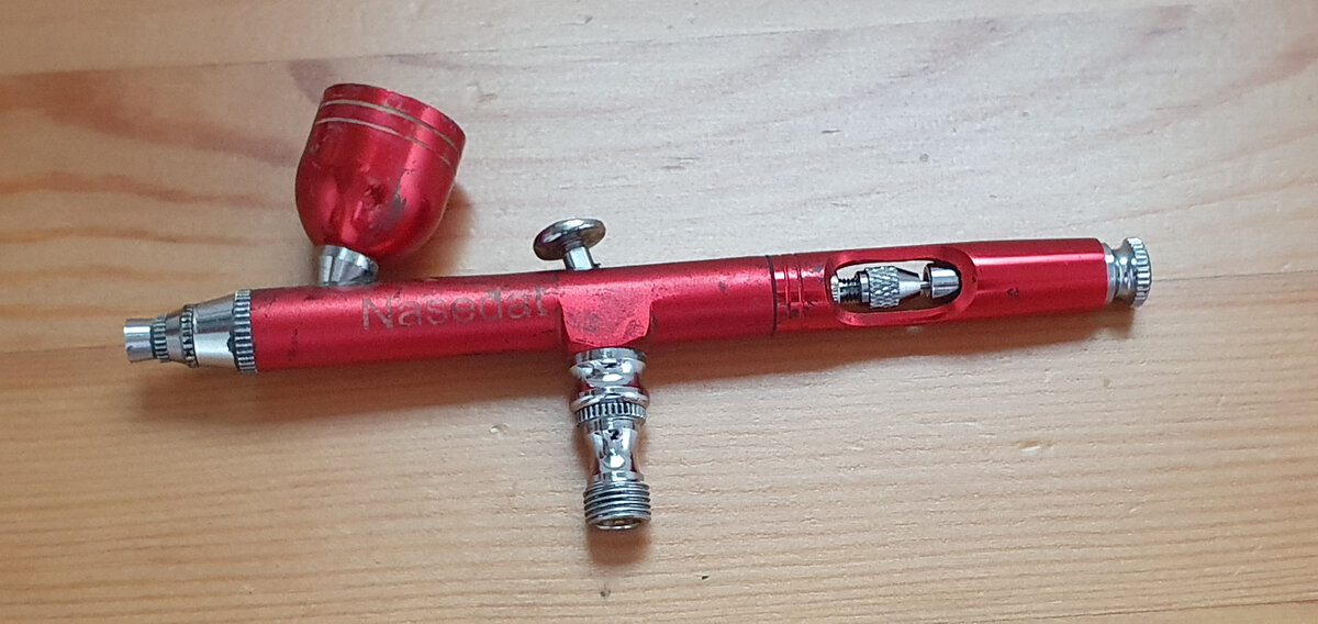 Случилось так, что аэрограф стал очень плохо распылять краску. Воздух шел, а вот струя краски вытворяла весьма неприятные чудеса. Шла слабо, скапливалась на выходе, распыляла не прямо, а в бок или вообще вниз. Частично разобрав аэрограф, я случайно обнаружил проблему. Вначале промыл насадку для аэрографа(кстати виды её весьма разнообразны и ссылку на али я укажу внизу) прочистил ее изнутри и снаружи от остатков краски. Затем промыл колпачок защиты иглы и тут я понял в чем причина. Оказывается нужно было изнутри при помощи специальных ершиков, которые шли в комплекте со стеклянной колбой для промывки, прочистить сам колпачок, ибо изнутри по кольцу остатки краски скапливались по кругу постепенно уменьшая возможность прохода краски. Получилось так. Игла двигается свободно, а вот возможность прохода краски не было, или она шла струей вниз или как ей вздумается или вообще не шла. Прочистив, струя выходит из аэрографа даже лучше чем из нового. Вот так была решена проблема с аэрографом и с