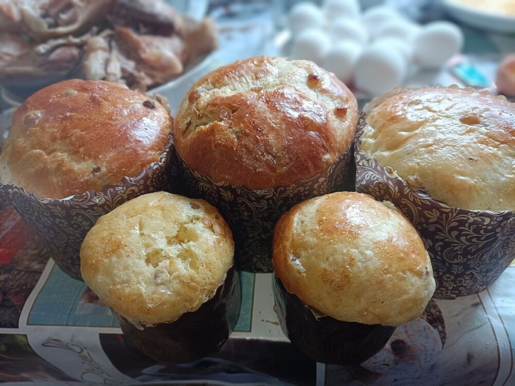 Все-таки я не удержалась и решила попробовать еще один новый рецепт. Вчера как раз было время, приготовила первое тесто и поставила в холодильник, а сегодня испекла. По этому рецепту тесто замешивается миксером, тк оно липкое и мягкое. Получаются более воздушные куличи.