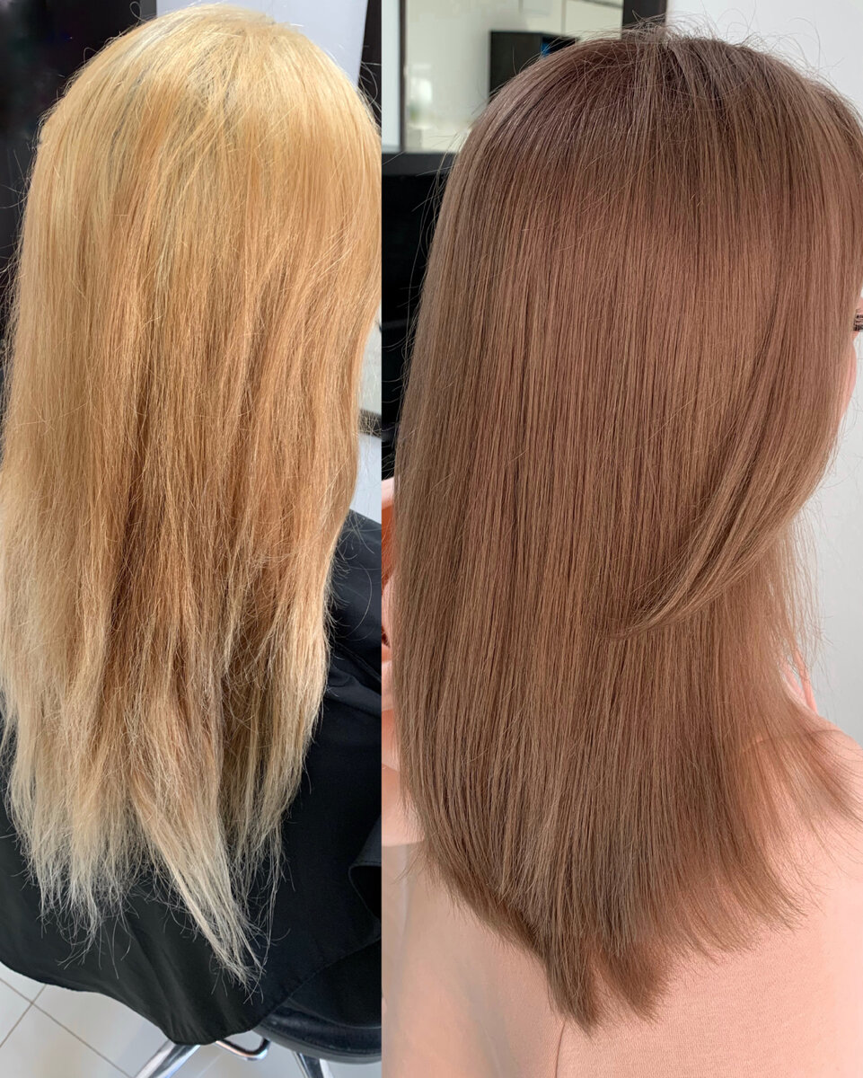 Всем добрый день я понимаю, что каждой из нас в душе колорист👩🏼🎨, либо кто хотел им стать. И у каждого из нас есть подружки на которых это можно по тренировать.🤭 Вот одна из подружек пришла и ко мне уже с готовые историей.😯 Девчонки красились красились и докрасились, что же делать дальше они естественно не знают ну слава Богу знаю я.💁🏼♀️ Итак поехали в данной истории все равно пришлось сделать легкое декопирование Цвет наверно на фотографии выглядит более-менее равномерно но в живую это не так🙇🏼♀️, но исключая концы которые естественно мы хотели сохранить но все же пришлось немножечко обрезать.✂️ Итак поехали не буду вас грузить в историей скажу одно мы справились💪🏽. 🔹Длинна ранее недосветлённая: На влажные волосы естественно после ХШГО: О.П + 6% 1:5 Недотянуло и нужно было дотянуть😒 Снова нанесение: О.П + 3% 1:5 И УРА мы получили нужный Ф.О 🔺Хелатирующий шампунь 🔻Реконструирующая маска 15’ 🔷Тонирование на сухие волосы! 🔹Прикорневая часть: 9.61 + 9.02 + 8.26 +