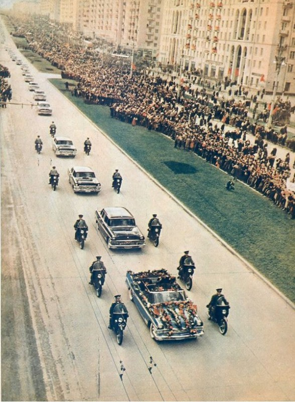 14 апреля 1961 года Москва торжественно встречала первого космонавта планеты. Двумя днями ранее с плакатами на улицы вышли, чтобы отпраздновать полёт Гагарина, ленинградцы.