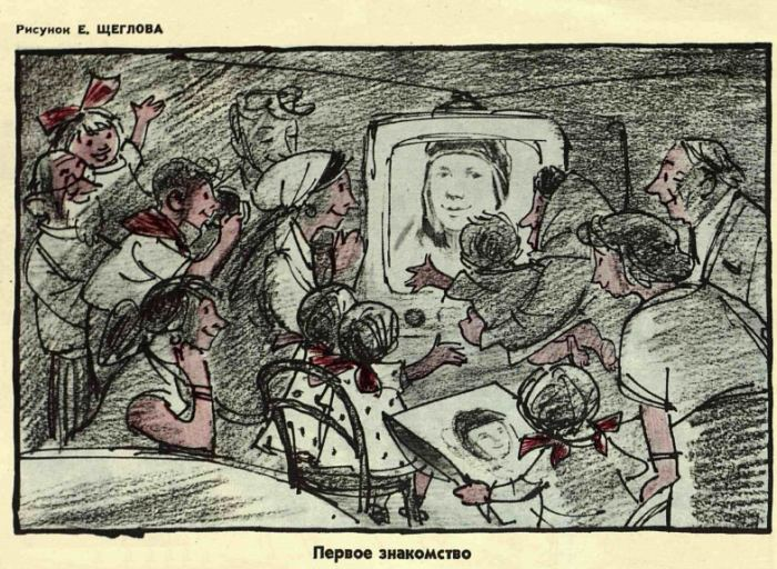 Карикатуры из советской печати апреля 1961 года, связанные с полётом Юрия Гагарина. Одна из главных тем весёлых рисунков — внезапная и громадная популярность Юрия Гагарина. Другая тема рисунков — предшественники. Здесь лекцию майора Гагарина слушают Герберт Уэллс, Жюль Верн и Алексей Николаевич Толстой: Ну и, конечно, не забыт главный предтеча космонавтики — Константин Эдуардович Циолковский: Важная тема 1961 года — антирелигиозная: «— Юрий Алексеевич, только пожалуйста, обращайтесь по-божески с Главным».