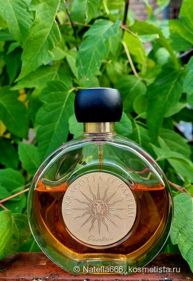 Аромат Guerlain Terracotta le Parfum был выпущен в честь 30-летия бронзирующей коллекции Guerlain Terracotta и характеризовался как «Солнце во флаконе». Это третий аромат Terracotta, первые были выпущены в 1999 и 2009 году. Красивый прозрачный круглый флакон с золотой эмблемой солнца в стиле коллекции Terracotta. Имеет объём 100 мл и выпускается в концентрации Eau de parfum. Этот аромат буквально покорил меня с первого вздоха… Он согревает, будто укутывает тёплым пледом, успокаивает и умиротворяет. Я не ношу его летом, для лета он слишком сладок и душен для меня. Его время весна — с начала апреля до середины мая, и ранняя осень. Аромат очень яркий, тёплый, обволакивающий и гармоничный. Я абсолютно не ощущаю в нём кокос, который ненавижу в парфюмерии. Здесь тиаре смешивается с илан-илангом, а потом туда добавляются белоцветочные ноты. От этого аромата балдеешь, им хочется наслаждаться. Очень женственный, красивый, гармоничный. Он не может не понравиться! Terracotta Le Parfum выпущен в 2