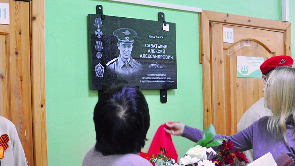 фото: Администрация Петрозаводска В школе №8 в Петрозавосдке установили мемориальную доску погибшему в ходе специальной военной операции Алексею Саватькину, сообщили в администрации города. Сегодня, 14 апреля, в школе №8 почтили память рядового Алексея Саватькина, который в апреле прошлого года погиб в ходе выполнения специальной военной операции. Мемориальную доску на стене учреждения открыли сестра и тетя убитого бойца. В восьмой школе Алексей отучился семь лет. Сегодня в нее ходит сын погибшего, учебное заведение закончила дочь. На церемонию пришли школьники, юнармейцы и педагоги. В открытии памятной доски приняли участие заместитель Главы администрации Петрозаводска – Наталья Кармазина, депутат Заксобрания Карелии генерал-майор Сергей Шугаев и военный комиссар города Владимир Кудрик. Директор восьмой школы Екатерина Реутова училась с погибшим в параллельных классах. На церемонии она призвала собравшихся помнить и чтить своих героев, а также выразила соболезнования семье военного.