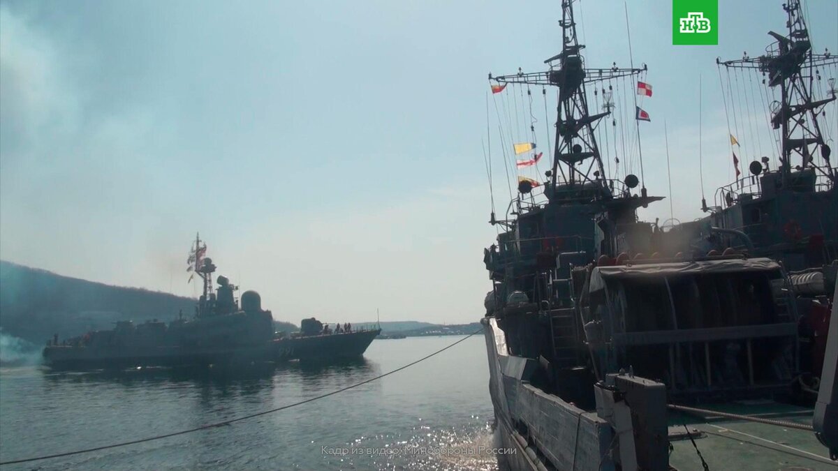 [ Смотреть видео на сайте НТВ ] Министерство обороны показало видеозапись с выходом боевых кораблей Тихоокеанского флота в рамках внезапной проверки боеготовности. Военные корабли Тихоокеанского флота вышли из пунктов постоянной дислокации и приступили к переходу и операционному развертыванию в назначенных районах Японского, Охотского и Берингова морей, сообщает Минобороны РФ. По маршруту движения на кораблях проводятся учения корабельных боевых расчетов: экипажи будут отрабатывать различные алгоритмы действий при выполнении задач в море. Сегодня стало известно, что Тихоокеанский флот в полном составе поднят по тревоге и приведен в высшую степень готовности. Как сообщил министр обороны Сергей Шойгу, проверка сил Тихоокеанского флота проводится по решению Верховного Главнокомандующего ВС РФ. А основной целью проверки станет «наращивание способности решать задачи по отражению агрессии вероятного противника с океанских и морских направлений». [ Смотреть видео на сайте НТВ ]