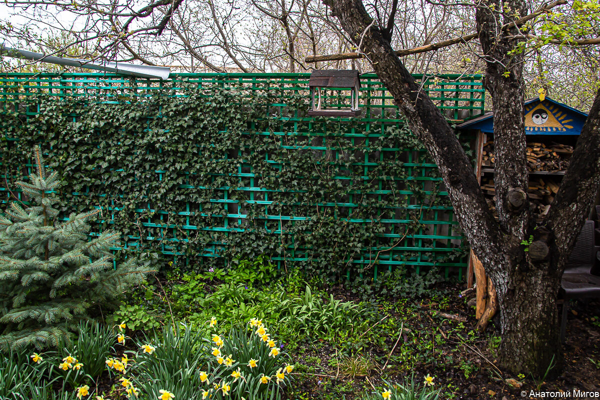 На днях я рассказывал, как смастерил вторую кормушку для птичек и повесил её в нашем Лесном уголке под старой грушей. Тут и сейчас большую часть дня тихо и тенисто, а уж когда груша зазеленеет, будет вообще рай для птичек. И они мою заботу оценили. С раннего утра уже сидят на ветках, поют свои песенки и ждут, когда я насыплю в кормушку семечек.