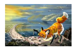 Играла она как-то раз на берегу в камешки. Лапой по ним бьёт, камешки шуршат - лисе забавно. Потом за большим валуном притаится и бросится на какой-нибудь камешек.