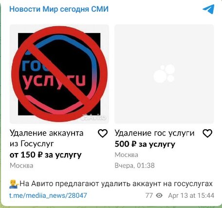Фейк: на Авито предлагают за деньги удалить аккаунт на «Госуслугах»