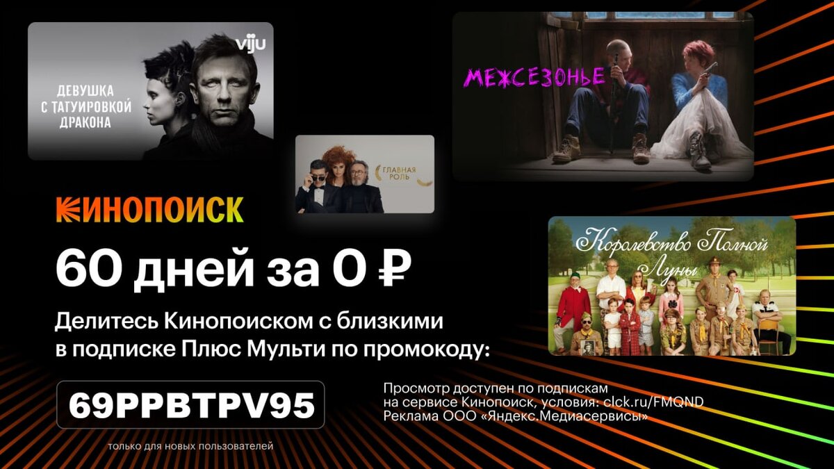 Заходим на сайт https://hd.kinopoisk.ru/gift?utm_source=getblogger&utm_medium=paid_performance&utm_content=goal-KP&utm_campaign=MSCAMP-62&utm_term=106003&promocode=69PPBTPV95 и вводим промокод: 69PPBTPV95