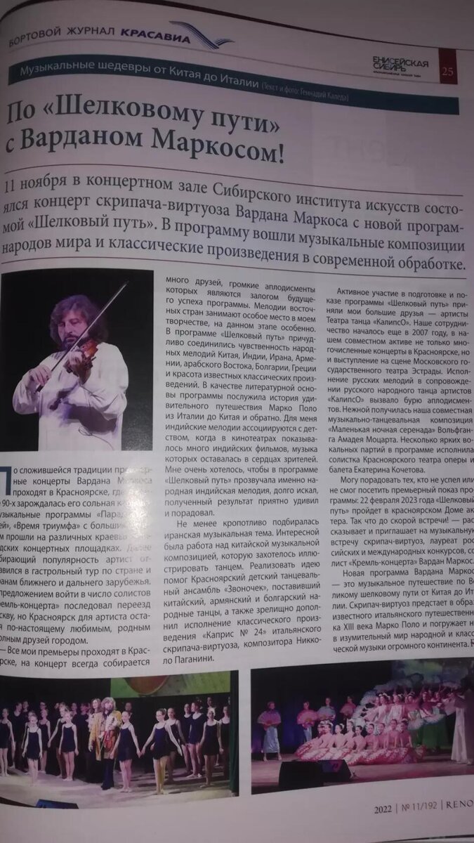 Статья в журнале Renome о концерте, который состоялся в Красноярске. Это была премьера моей новой программы "ШЕЛКОВЫЙ ПУТЬ ".