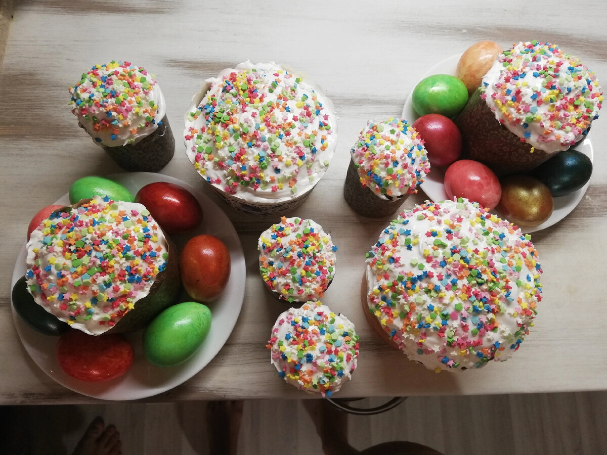 Доброго времени суток! Напишу, пожалуй, и наш семейный рецепт куличей. Не судите строго. Ингредиенты: Для теста: -молоко теплое - 750 мл. -мука 1,5 кг (приблизительно, может уйти больше или меньше) -дрожжи (сухие по дозировке на 1,5 кг муки (у нас 3 пакетика) или 50 г свежих) -яйца - 7 шт. (4 желтка и 3 целых яйца) -сахар - 300 грамм (можно ванильный) -сливочное масло - 200г -шафран (как аналог имеретинский шафран или куркума) -соль 0,5 ч. л. -сухофрукты и орехи по вкусу (изюм, курага, цукаты) Для глазури -4 яичных белка -сахарная пудра 500 гр. -сок лимона (5-10 мл.) Для начала готовим опару : в молоко 750 мл, добавляем 200 гр. сахара и разогреваем до теплого состояния (чтобы палец мог терпеть), примерно 36-37 градусов, переливаем в миску, добавляем дрожжи и 700-1000 гр. Муки, надо смотреть на консистенцию, что-то типа густой сметаны. Оставляем минут на 30 в теплом месте. Пока опара подходит: Масло растапливаем и добавляем в него шафран (как аналог можно имеретинский шафран, на худой