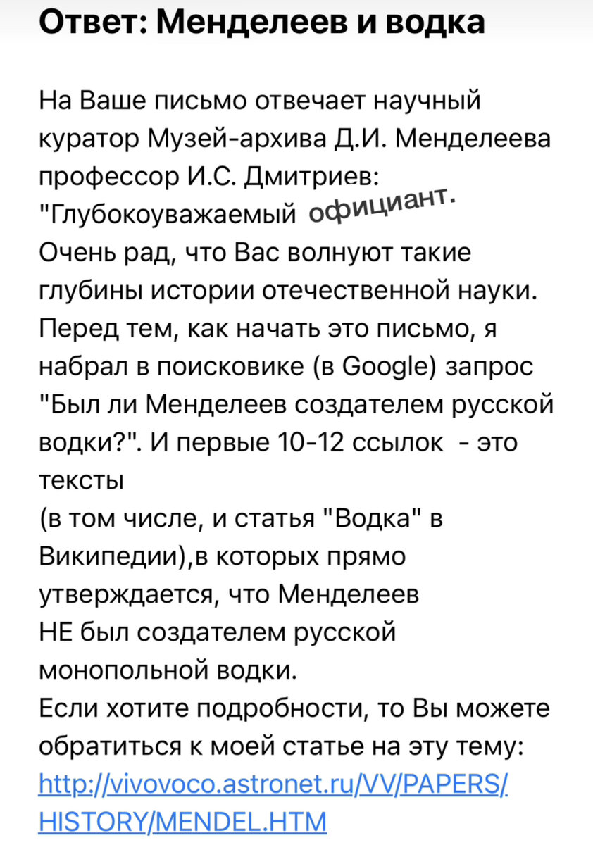 Зачем казанский официант написал письмо директору музея Д. И. Менделеева?