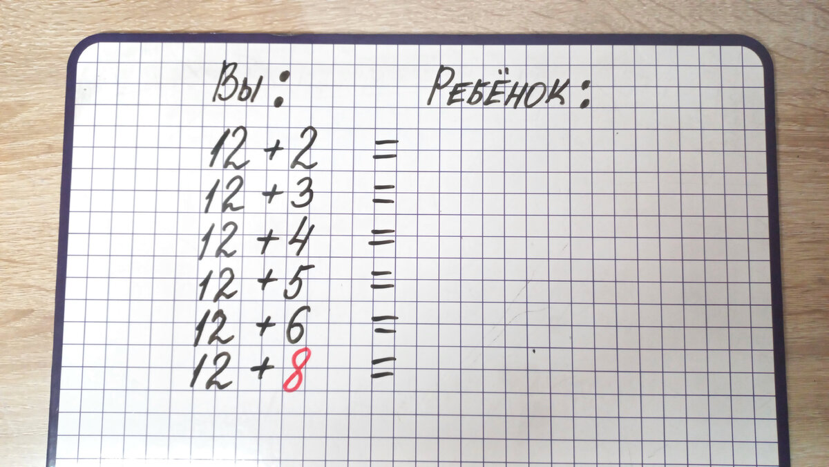 Тут без подвоха, потому что мы ребёнка уже настроили. Я больше люблю давать на переход через десяток, но можно и попроще взять, если мы слабенькие.