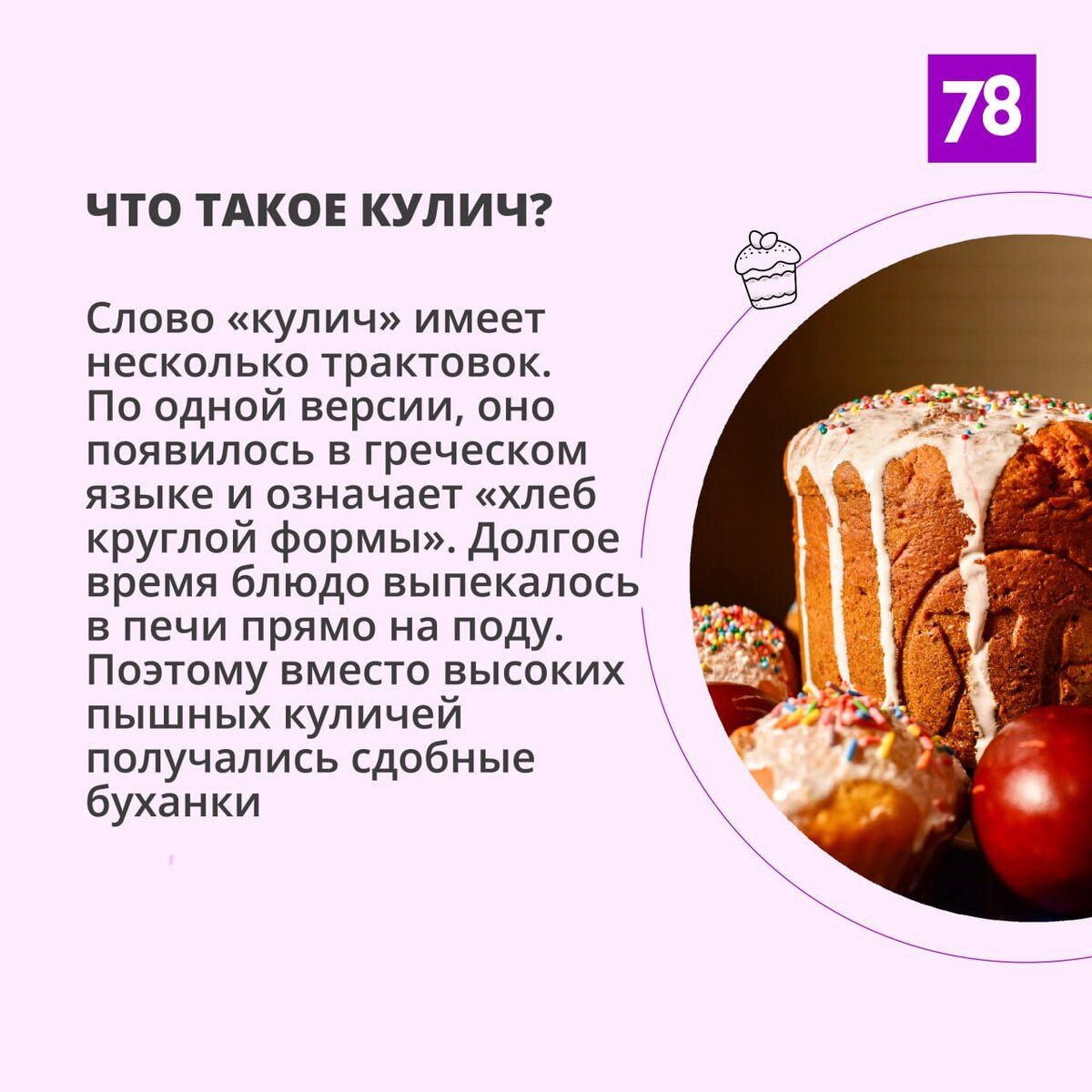 Немного про историю кулича и рецепт самого вкусного праздничного угощения — в наших карточках.