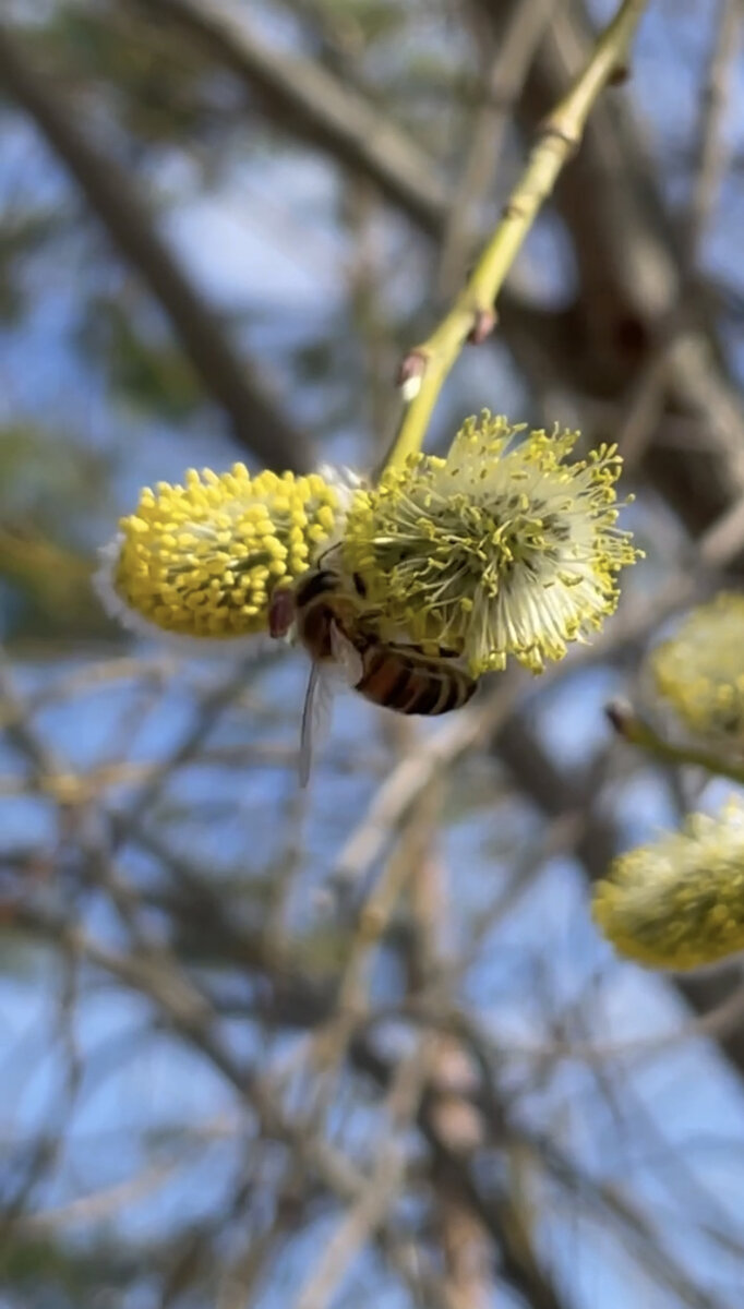 Пчелки вовсю трудятся, собирают ранневесенний мёд и пыльцу 🐝 Видите на лапках у пчелки желтые точечки? Это и есть пыльца смоченная в секрете её желёз в гранулы. Пчела вычёсывает пыльцу со цветка специальными щёточками ног и складывает её в виде маленьких комков в, так называемые, корзиночки, на задней паре ног. Отсюда и название - обножка. Сложенная и утрамбованная в соты, залитая сверху мёдом обножка называется пергой. Помню Лёша говорил, когда покупал первые улья, что пчеловоды мёд не едят. Я ему не верила!😀 Но, как оказалось, зря! Мёд, конечно, вкусный. Но у пчел столько продуктов интересных! И мёд - не главное. В первый год я не понимала зачем есть мёд в сотах, если можно поесть просто мёд и не плеваться воском? Во второй год сотовый мёд я оценила, но пергу не понимала. На третий год я от перги оторваться не могла, а уж если она в сотах залитая мёдом - то это верх блаженства! Что будет в этом году? Полюбую маточное молочко и трутневой гемогенат? Даже не представляю 🫣 А ка