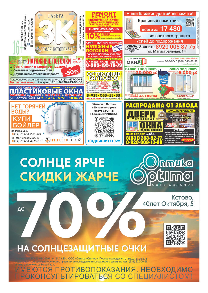 Газета "ЗЕМЛЯ КСТОВСКАЯ"№ 13(960) от 15.04.2023г.