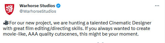 Чешский разработчик Warhorse Studios, автор ролевого боевика Kingdom Come: Deliverance, сейчас занят разработкой новой неанонсированной игры. Об этом стало известно из открытой вакансии кинематографического дизайнера, которого ищет студия для работы над новым проектом. К сожалению, из этой вакансии не получится узнать много о будущей игре. Известно, что она будет крупнобюджетной (AAA), и от кандидата требуется опыт работы с CryEngine или аналогичным игровым движком. Возможно, нас ждет продолжение Kingdom Come: Deliverance, так как она разрабатывалась на CryEngine, а может и абсолютно новая ролевая игра с открытым миром. Время покажет. https://www.youtube.com/watch?v=yKO52lZ3eMg