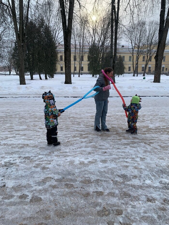 Мы с Фросей заходим в палату. Мальчик лежит к нам спиной и не поворачивается. -Он не очень контактный и стесняется, - говорит мама. Мы кидаемся мягким мячиком. - ты…прошлогодний огурец. - а ты- сопливая качель. - а ты кулебяка. - а ты, а ты… сосиска с кетчупом. Заливисто смеется. Привожу маленького слона-лего. Забирается ко мне на коленки. - Давай вместе собирать. Я не умею собирать лего. Нам помогает Женя, сосед по палате. Димка смеется: -Ну ты глупый клоооооун!!!! Димка бежит ко мне от палаты и кричит на все отделение: КНОПКА ЖЕНИТСЯ! Дарит рисунок. Рисунок висит у меня на холодильнике. Меня будет выдавать замуж все отделение. И все отделение будет на свадьбе в ЗУМ. Заезжаем с мужем. Димка бежит и не узнает. Я без носа, но с фатой. - Ты красивая! Лето. Димка отважно провожает меня до лестницы, потому что в коридоре выключили свет. Мама говорит, он боится темноты. - Давай, Кнопка, руку, чтобы тебе не страшно было! Крепко сжимает мою руку в своей ладошке и шлепает по коридору. Щемящая нежность. -А как ты обратно дойдешь? - А я очень смелый! Доводит меня до светлого холла и почти бежит обратно. Поворачивается. -Ты иди, а то поздно уже! До встречи! Машет рукой. Да, Дим, ты самый смелый маленький человек из всех, кого я встречала. Димка- победил!!!! Сентябрь. Мы в Новгороде. Катаемся на кораблике. Димка играет с братом в котиков, которых я привезла. Мама счастливо улыбается. Самая лучистая мама из всех, кого я знаю. Они украли мое сердце. Пусть у них все будет хорошо! Февраль. Мы приезжаем на Димкин день рождения. Он стал тяжелым, и на голове чудесный ершик. Мы гуляем по Кремлю с носом, поросенком и шариками. Пугаем коня.