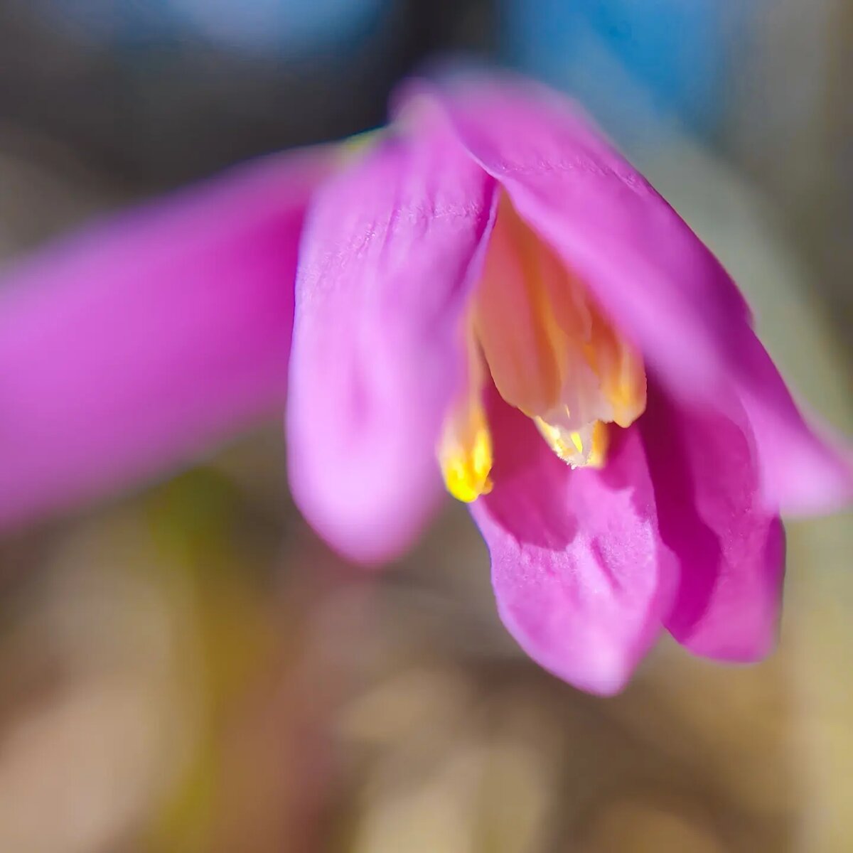 Канды́к сиби́рский, многолетнее растение рода Кандык (Erythronium), достаточно холодостоек, ему не помешали капризы природы - ни повторяющиеся один за другим снегопады, ни ночные морозы. Сама луковица спрятана достаточно глубоко, а на поверхности появляется только два листа и одиночный розово-лиловый цветок.