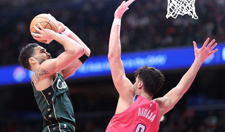 Суть значительной части атак «Бостона» – это оставить Джейсона Тэйтума против жертвы. Во многих случаях для этого партнер по команде будет ставить для Тэйтума заслон на мяче, чтобы в итоге Тэйтум атаковал против игрока, уступающего ему в габаритах или скорости. Чем хорош форвард «Селтикс» – получить преимущество он может и так и так: через маленьких игроков он бросает, мимо больших идет в проход.