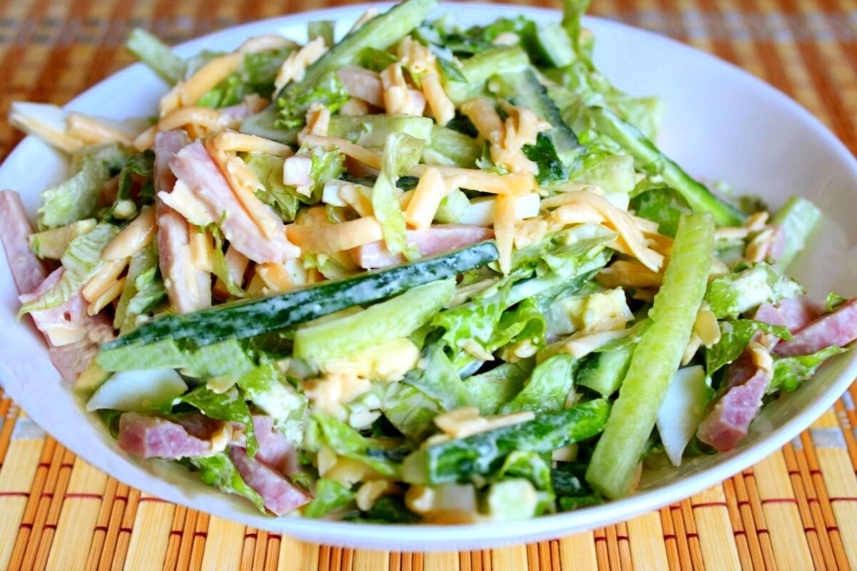 Ни один ужин у нас не обходится без вкусного, но простого в приготовлении салата. Я люблю на каждый день салаты, где не нужно специально ничего варить и подготавливать. Идеальный вариант, когда устала вечером после рабочего дня. Салат получается очень вкусный, свежий, хрустящий за счет огурца - в общем, рекомендую вам попробовать! Приготовление салатика: На крупной терке натираем сыр, режем ветчину либо колбасу. Вместо ветчины можно также взять курицу (запеченную, отварную или копченую - что есть дома). Следующий ингредиент - это свежий огурец, его режем соломкой. И завершающий ингредиент: это должна быть пекинская капуста, которую нужно нарезать тонко ножом. Добавляем по вкусу соль, можно немного черного перца и заправляем салат майонезом. Хорошо перемешиваем и можно сразу же есть. Салат получается свежий, хрустящий, очень-очень вкусный! Приятного аппетита, мои дорогие! Ингредиенты (пропорции на ваш вкус, все примерно) огурец свежий - 1 шт ветчина - 70 гр сыр - 70 гр капуста пекинска