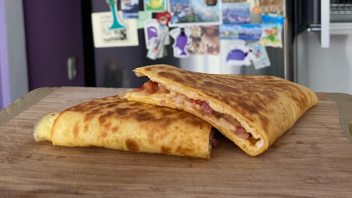 Всем привет. Уже многие месяцы готовим себе тортильи на завтрак. Делаем а-ля кесадилью. От классической отличается добавлением взбитых яиц, мясной начинки и разнообразных соусов.